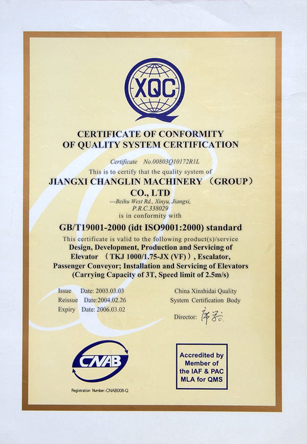 2003質(zhì)量體系認(rèn)證證書(shū)(英文)