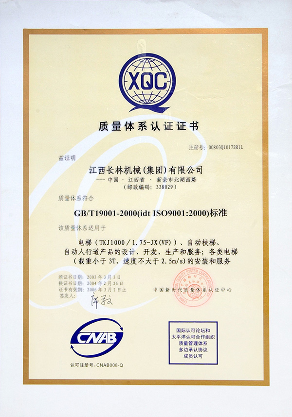 2003質(zhì)量體系認(rèn)證證書